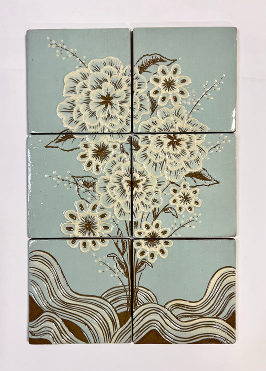 4 inch Ceramic Handmade Tiles - Coasters - Botanical