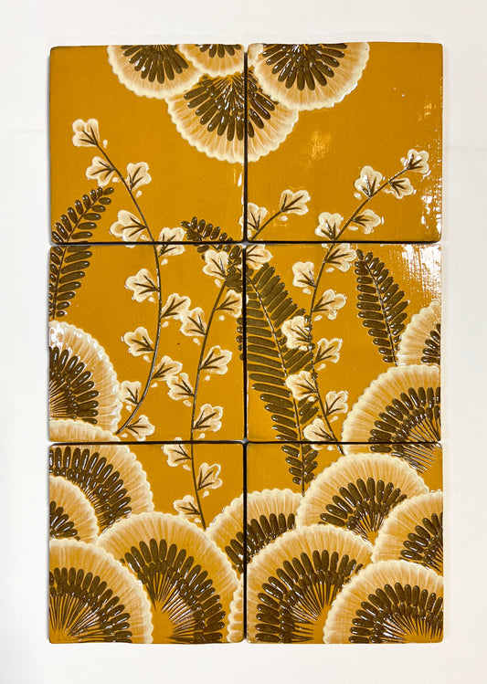 Sold outGolden Botanicals Handmade Tile Set