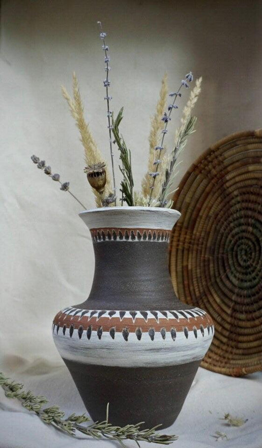 Ceramic Vase Handmade, Boho style Ceramic Vase, Hand decorated vase