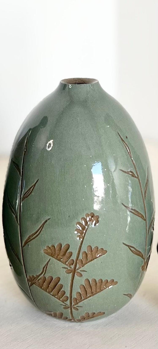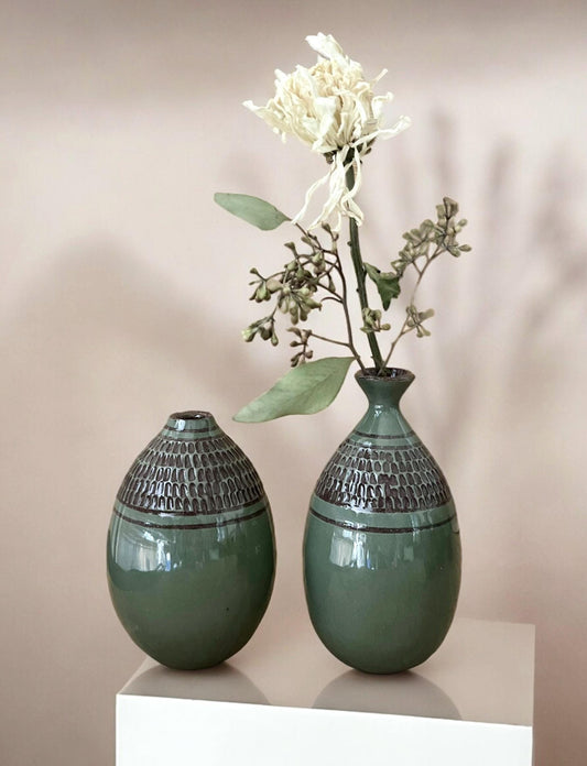 Teal Carved Bud Vase Small